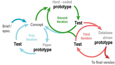 2. Disseny: fer una pluja d’idees (brainstorming) de dissenys i metàfores, desenvolupar el model de navegació, crear prototips lo-fi i hi-fi, verificar la usabilitat dels prototips, documentar estàndards, etc.